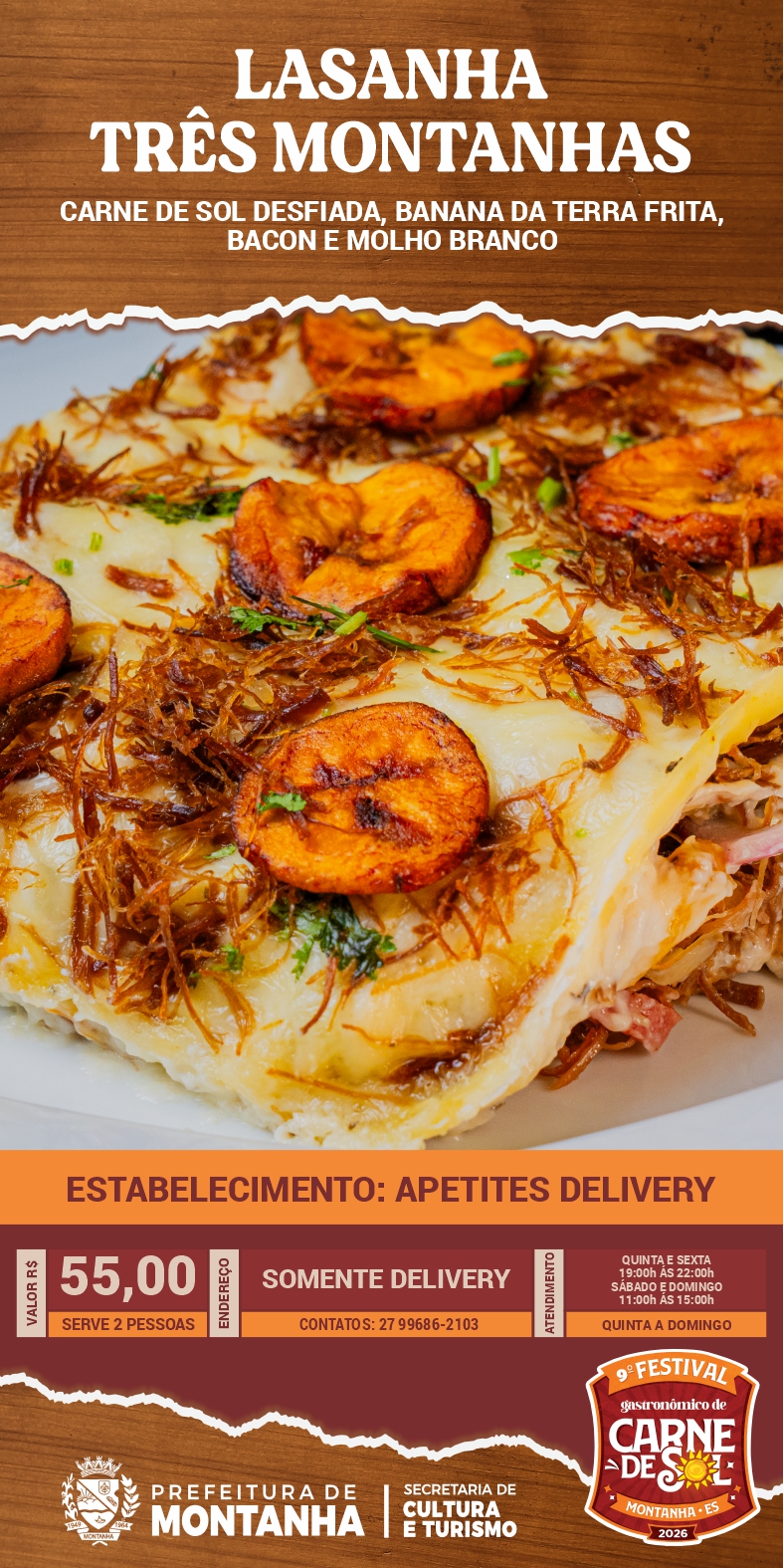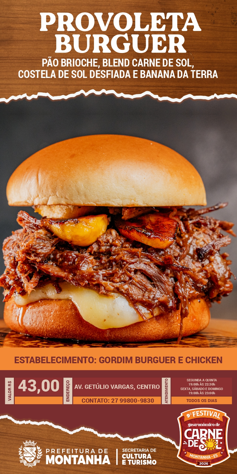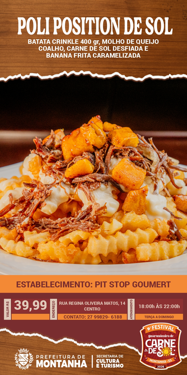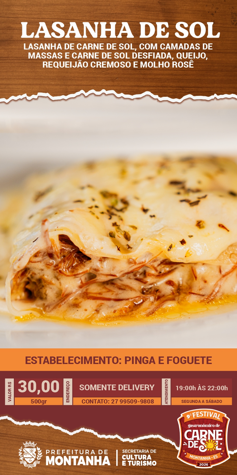 A Prefeitura de Montanha, através da Secretaria Municipal de Cultura e Turismo, convida toda a população e visitantes a continuarem vivenciando os sabores do 9º Festival Gastronômico da Carne de Sol através do Roteiro Gastronômico, que segue até o dia 16 de maio nos estabelecimentos participantes.