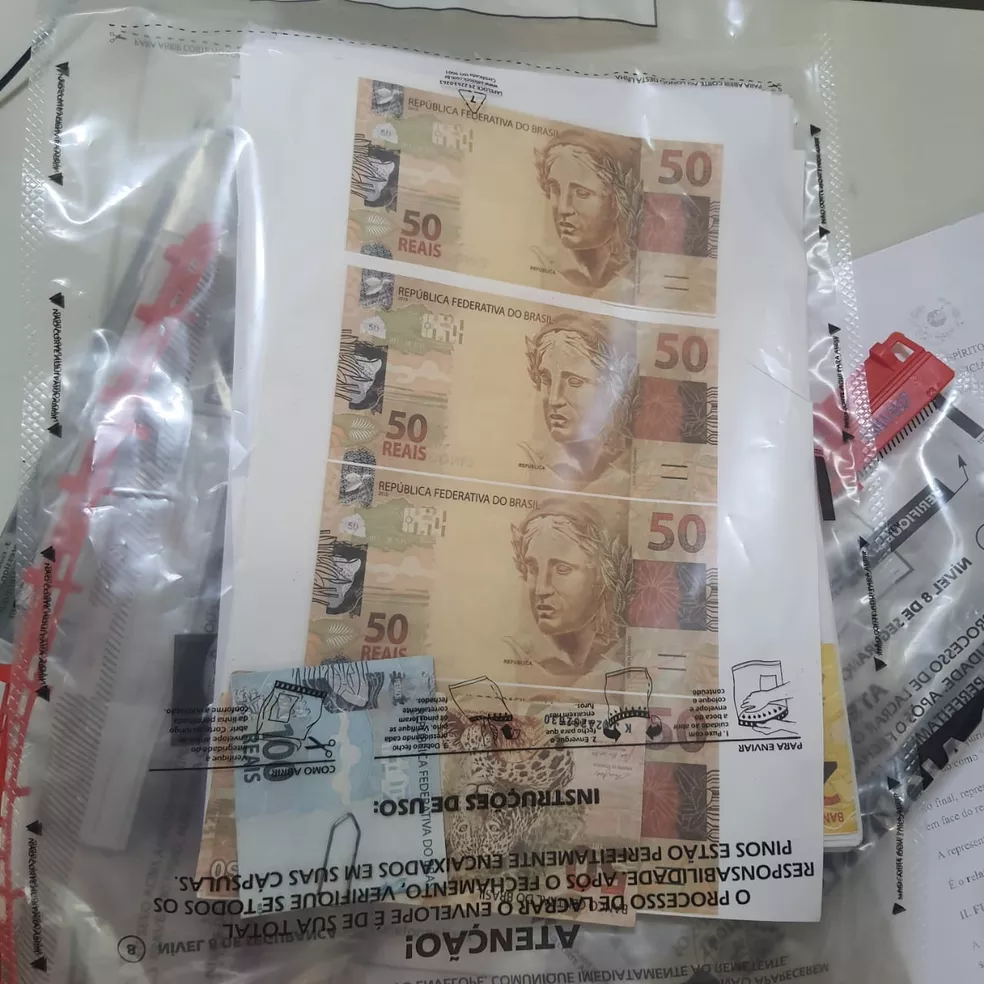 Dinheiro falso foi apreendido na casa de PM reformado no ES — Foto: Reprodução/TV Gazeta